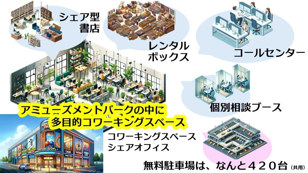 ・個別相談ブース・シェア型書店&レンタルボックス・寺子屋コーナー