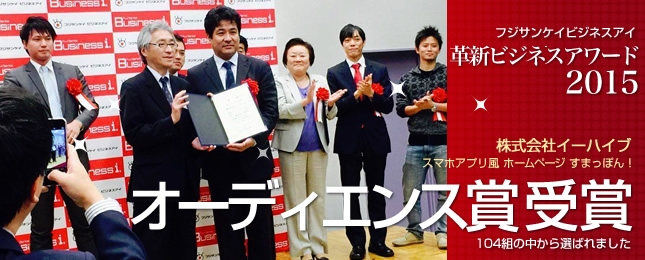 そんな思いを中心に、若い女性アイドルを育成するジョブ・ネットと障がい者の雇用と技術を発揮できる場を作るカムラック、そして西日本で初の理科系大学発ベンチャーとして誕生したイーハイブが、集まりました。さらに、それぞれに所属のアイドルや障がい者が活躍する場所を広げるためにフジサンケイビジネスアイ・イノベーションズアイ主催の革新ビジネスアワード2015にて、観客投票1位のオーディエンス賞受賞したすまっぽん!の活用することといたしました。