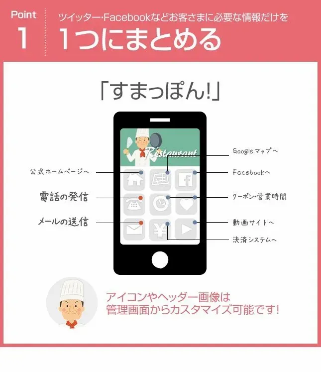 顧客に必要な情報を1つにまとめるアプリ風ホームページ「すまっぽん!」。