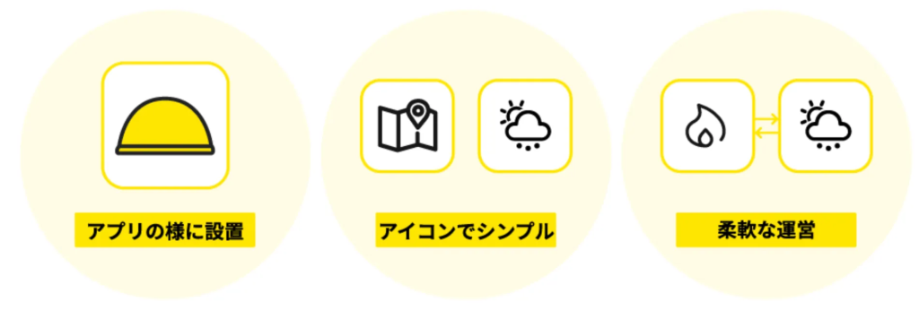 その点「すまっぽん!」なら、すぐに知りたい情報だけをまとめられますし、一目で感覚的に分かるアイコンで表示できるので、咄嗟のときも迷わず情報をチェックできます。 |