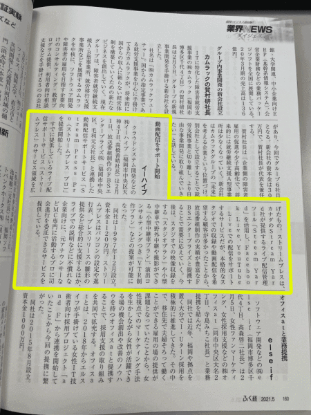 クラウドシステム開発などの株式会社イーハイブ(福岡市中央区天神4丁目、高橋善晴社長)は2月1日、放送番組制作のFBSエンタープライズ株式会社(福岡市中央区、毛利元夫社長)と連携した動画配信サポートサービス「Stream Press Pro(ストリームプレス プロ)」を提供開始した。