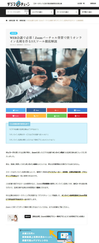 中小企業のWEBマーケティングを支援する「デジマチェーン」が厳選した、オンライン名刺を簡単にZoom背景にできるおすすめ5大ツールを紹介します。