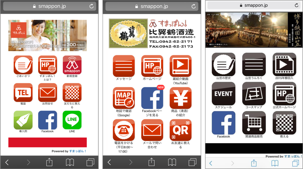 すまっぽん!は、ホームページ上のコンテンツをスマホアプリ風にまとめて表示。スマホのホーム画面に配置することでアプリとほぼ同様の使い方が可能だ。ツール提供側はQRコードで顧客に配布できる点もアプリの配布方法に近い。むしろストアを経由しないだけ手軽に利用できる。