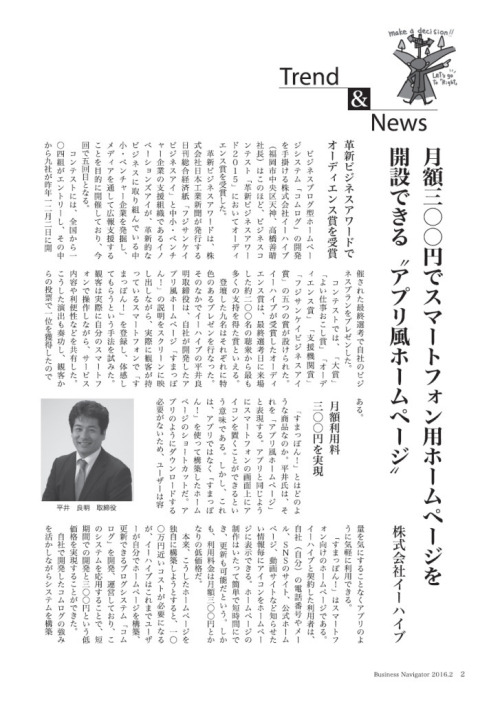 ビジネスブログ型ホームページシステム「コムログ」の開発を手掛ける株式会社イーハイブ(福岡市中央区天神、高橋善晴社長)はこのほど、ビジネスコンテスト「革新ビジネスアワード2015」においてオーディエンス賞を受賞した。