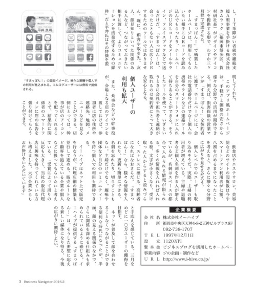 ネットが普及して顔を合わせることなくつながることができる便利な時代になったが、反面、顔の見える関係の中で、さらに関係を深める仕組みも求められているように感じる。イーハイブが提供する「すまっぽん!}は、そうした要望に応える新しい媒体になり得る。今後の広がりに期待したい。