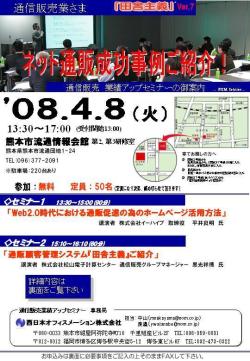 通信販売 業績アップセミナーの御案内 日時 2008年4月8日(火) 13:30~17:00 会場 熊本市流通情報会館 5F 第2研修室(セミナー会場) 第3研修室(各ソリューション展示会場) (熊本県熊本市流通団地1-24→詳細地図) ※駐車場220台ありコ...