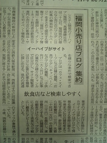 日本経済新聞:2008年1月30日 福岡小売店ブログ集約