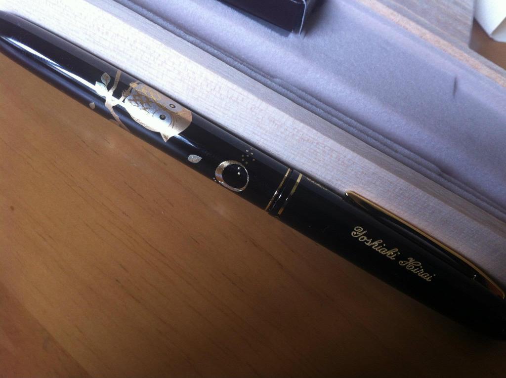 いただきました。なんと万年筆風の筆ペンでネーム入りです。